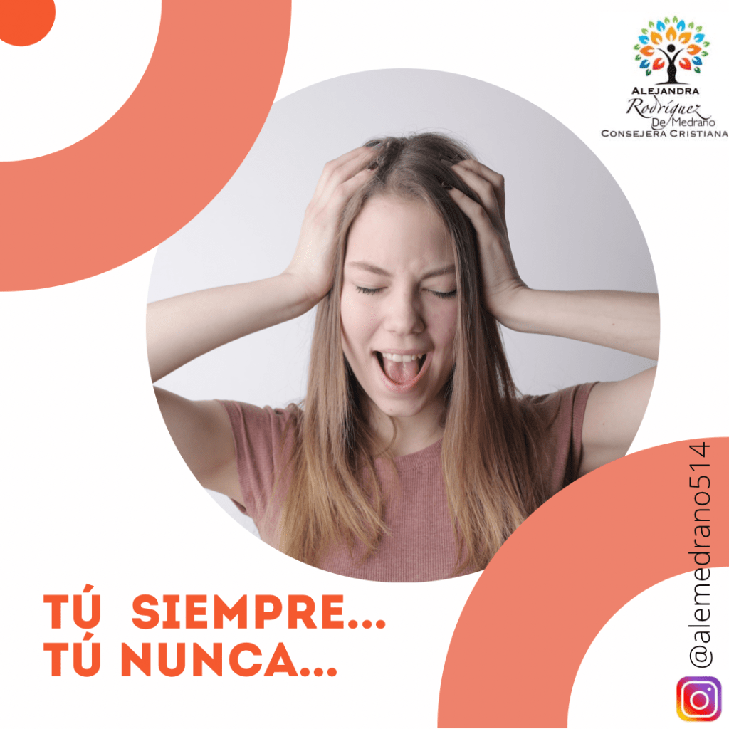 Todos en algún momento hemos tenido que confrontar a otros por alguna situación, en algunas ocasiones salen las siguientes frases “Es que tú siempre…” o “Es que tú nunca me…” estas palabras son conceptos absolutistas que única y exclusivamente le corresponden a Dios y que al utilizarlas herimos los sentimientos de quienes nos escuchan porque no es verdad que una persona nunca hace aquello… o que siempre hace lo mismo… En algún momento no hizo tal cosa o en algunas ocasiones no cumple con determinadas tareas, pero no significa que todo lo ha hecho mal.